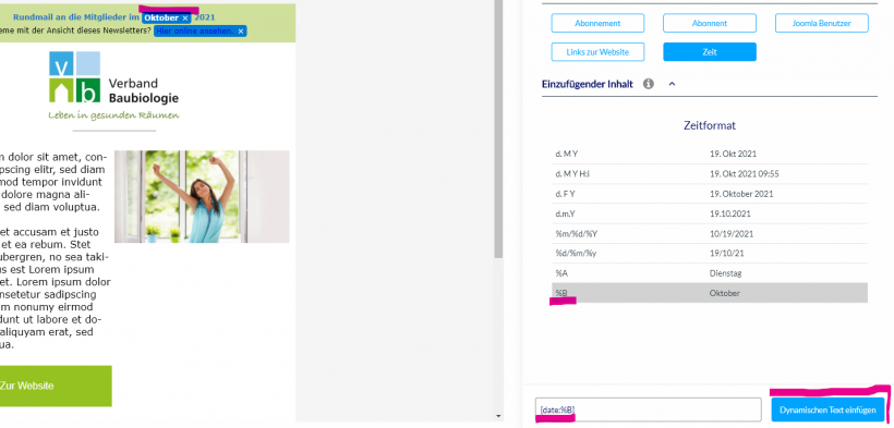 Mit "Dynamischen Text einfügen" wird die Auswahl bestätigt.